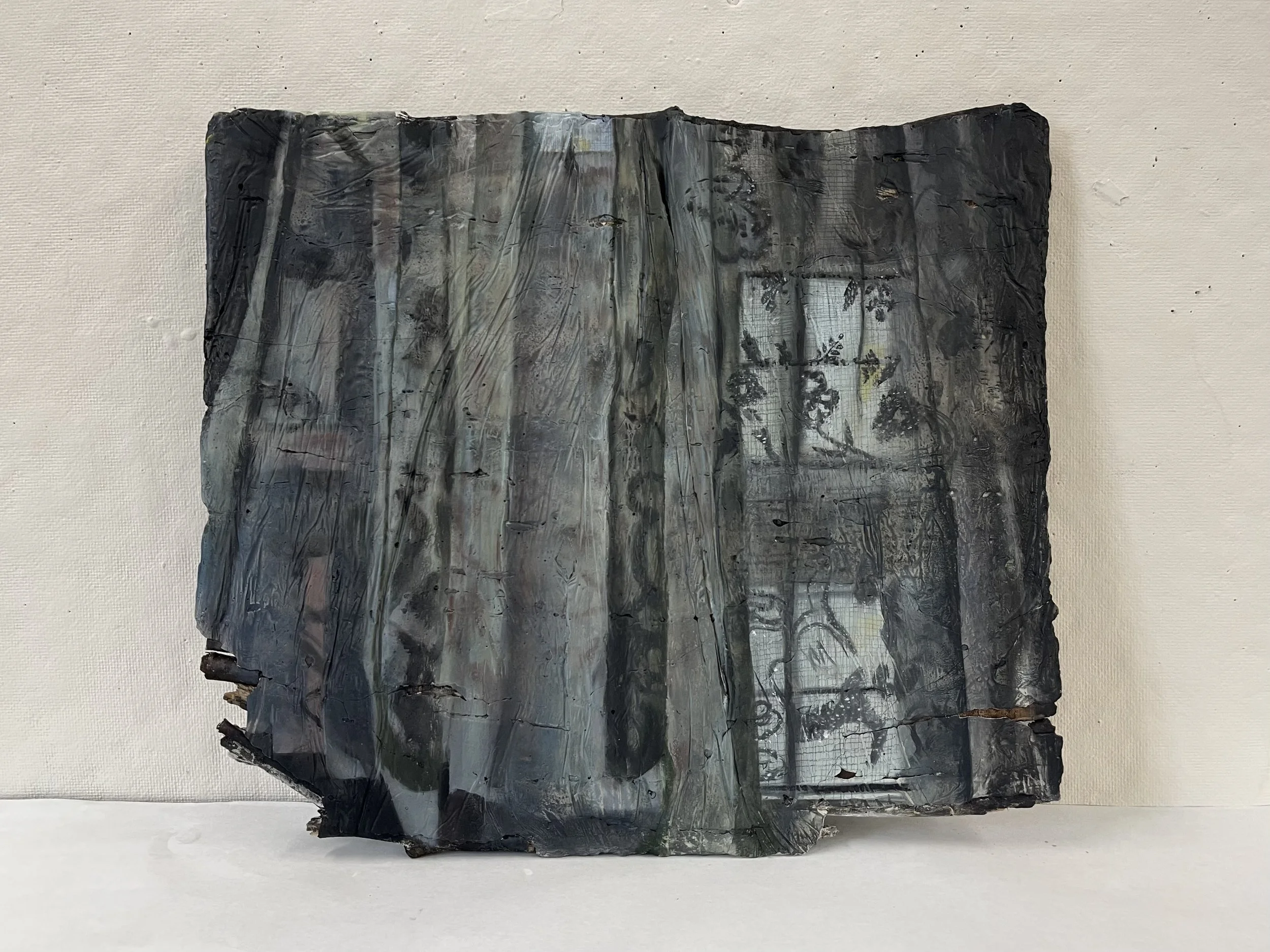 oil on cement casted with tree sticks
